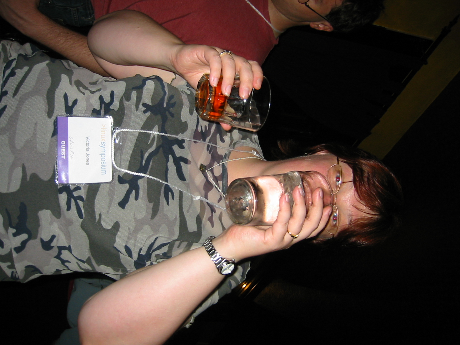 Victoria hides her face but not her name tag