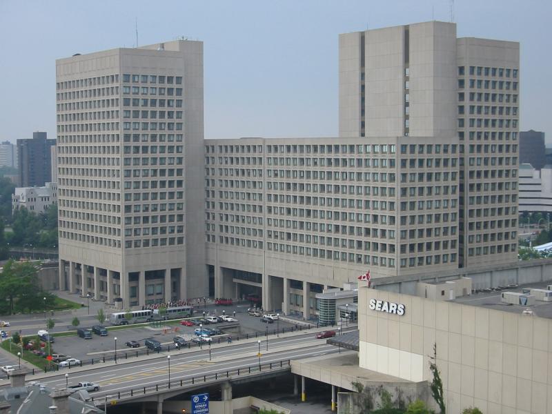 Marching band at the building across the way